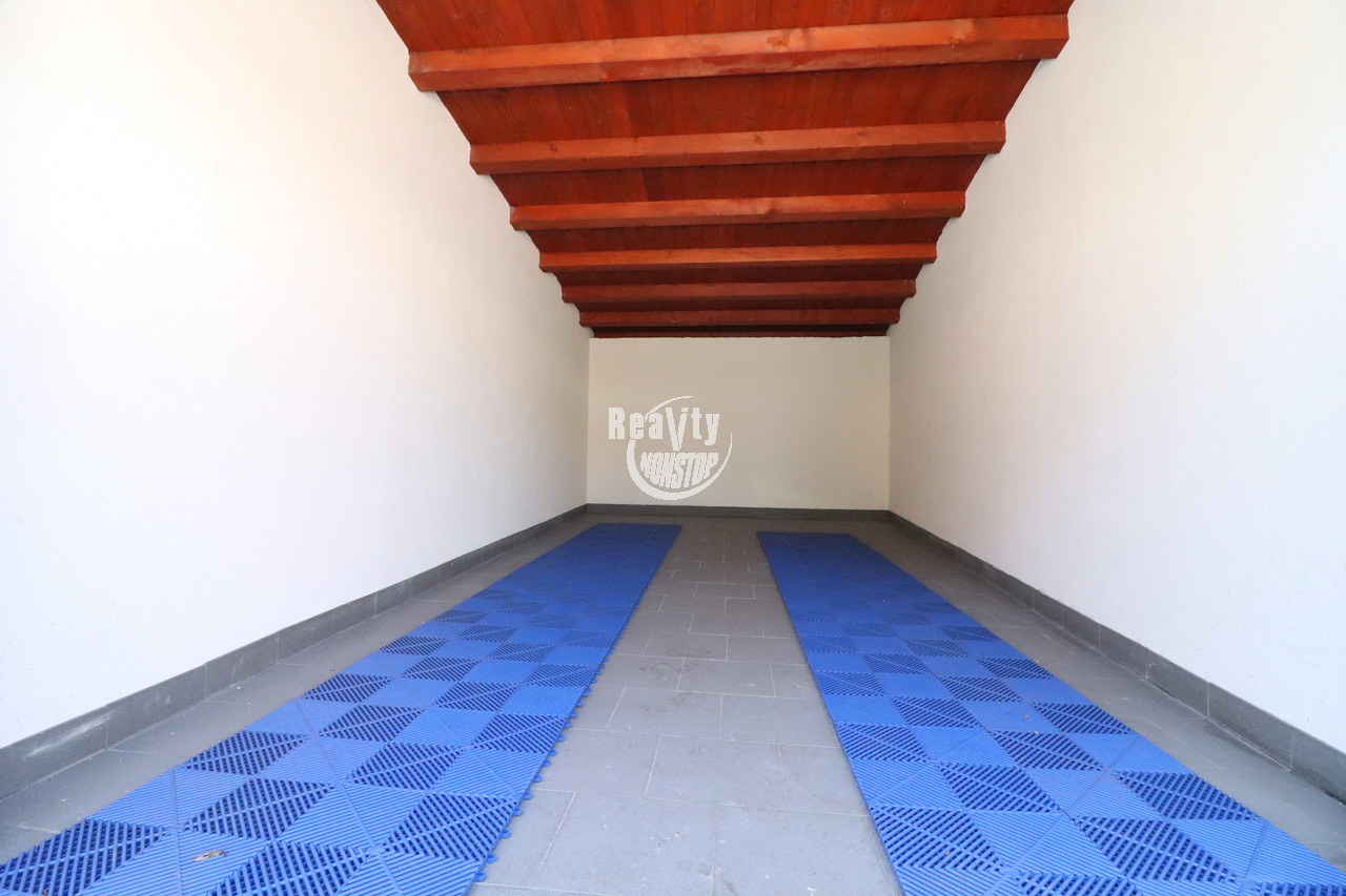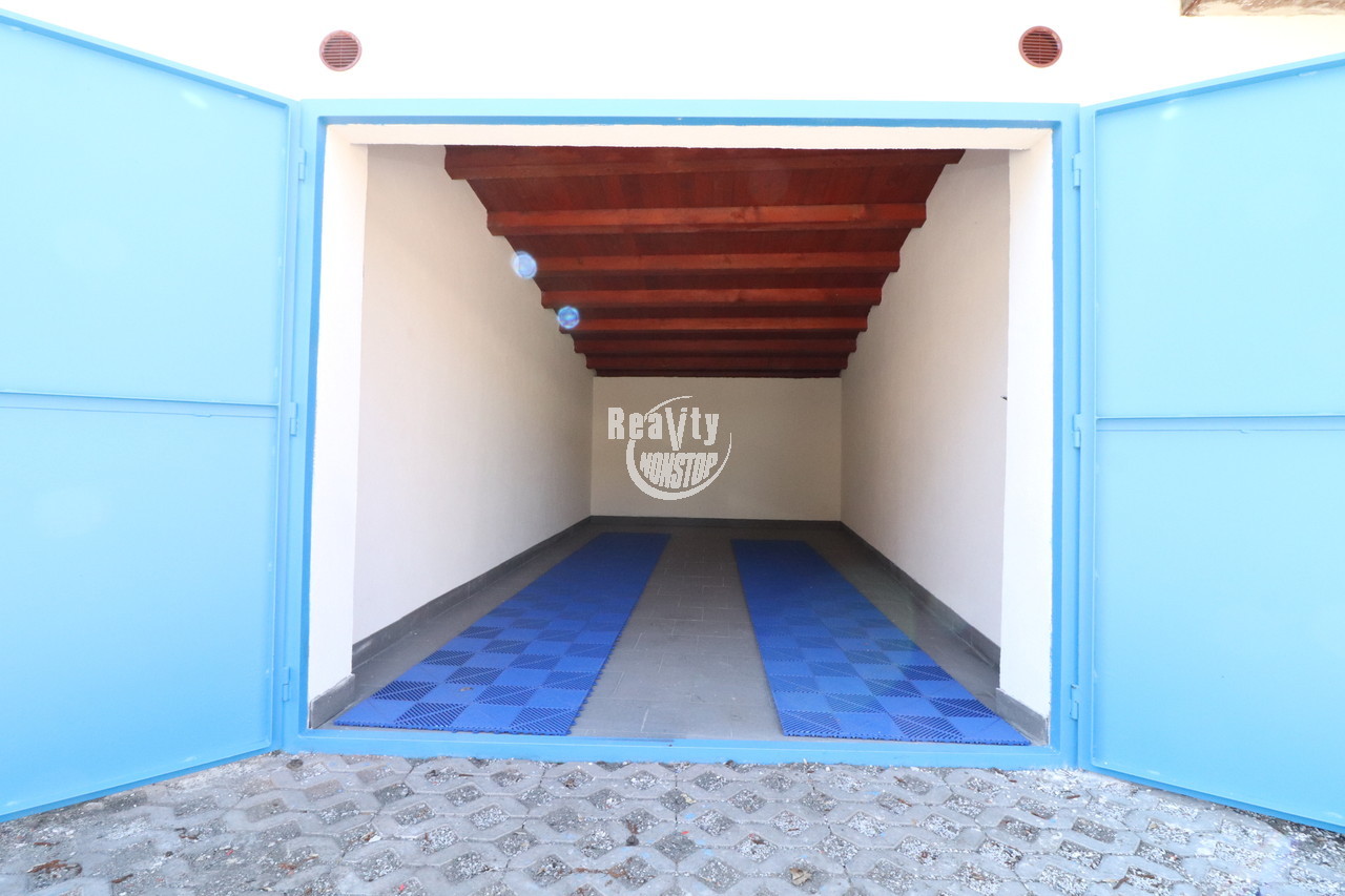 Majitel díky svému záměru parkovat zde svůj sportovní vůz původní garáž musel z důvodu stavebně technického stavu kompletně znovu vystavět včetně nové střechy a instalace vjezdových vrat z 2mm plechu. Zastavěná plocha činí 22 m2. V ga...